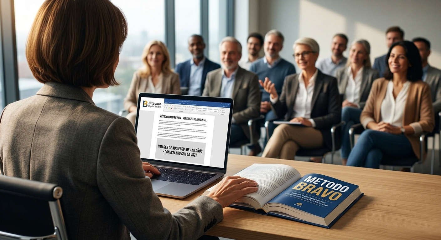 En esta auditoría para Bitácora Digital Studio, analizo si este sistema, Método BRAVO, es la clave para que tu voz vuelva a tener el peso que merece, ya sea tras una pantalla, en una sala de juntas o sobre un escenario frente a cientos de personas. En un mundo donde la IA puede imitar voces, tu capacidad de comunicar con autoridad humana es tu mayor activo.
