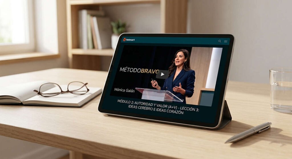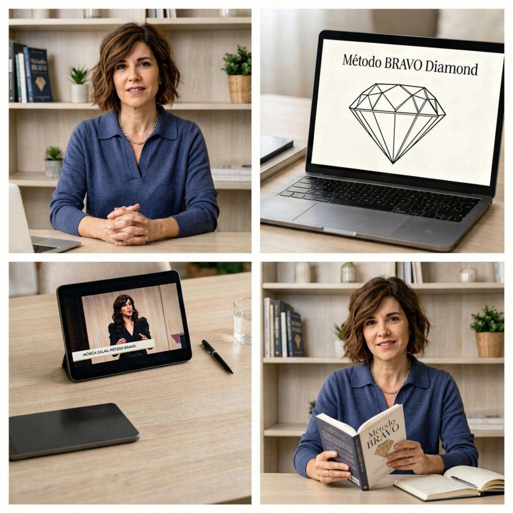 Mónica Galán no enseña a «hablar bonito». Enseña ingeniería del mensaje. Cuando sufres parálisis, el mayor problema es el caos mental; el Método BRAVO ofrece una estructura de 5 pasos claros que actúan como un mapa de navegación.